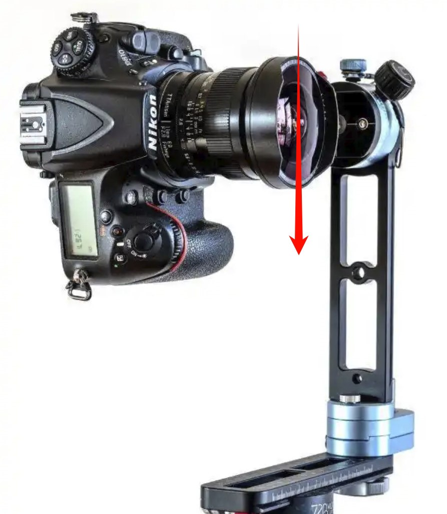 在我们进行芜湖VR全景拍摄的过程中,除了部分要求不高的使用VR全景相机外,芜湖专业的都是用专业相机,我们在使用专业相机的时候,必不可少的就是VR云台,在长时期用过VR云台的人我想都会遇到一个相当无语的问题:拍摄过程中会出现相像镜头向正下文下垂,如下图箭头方向下垂。
